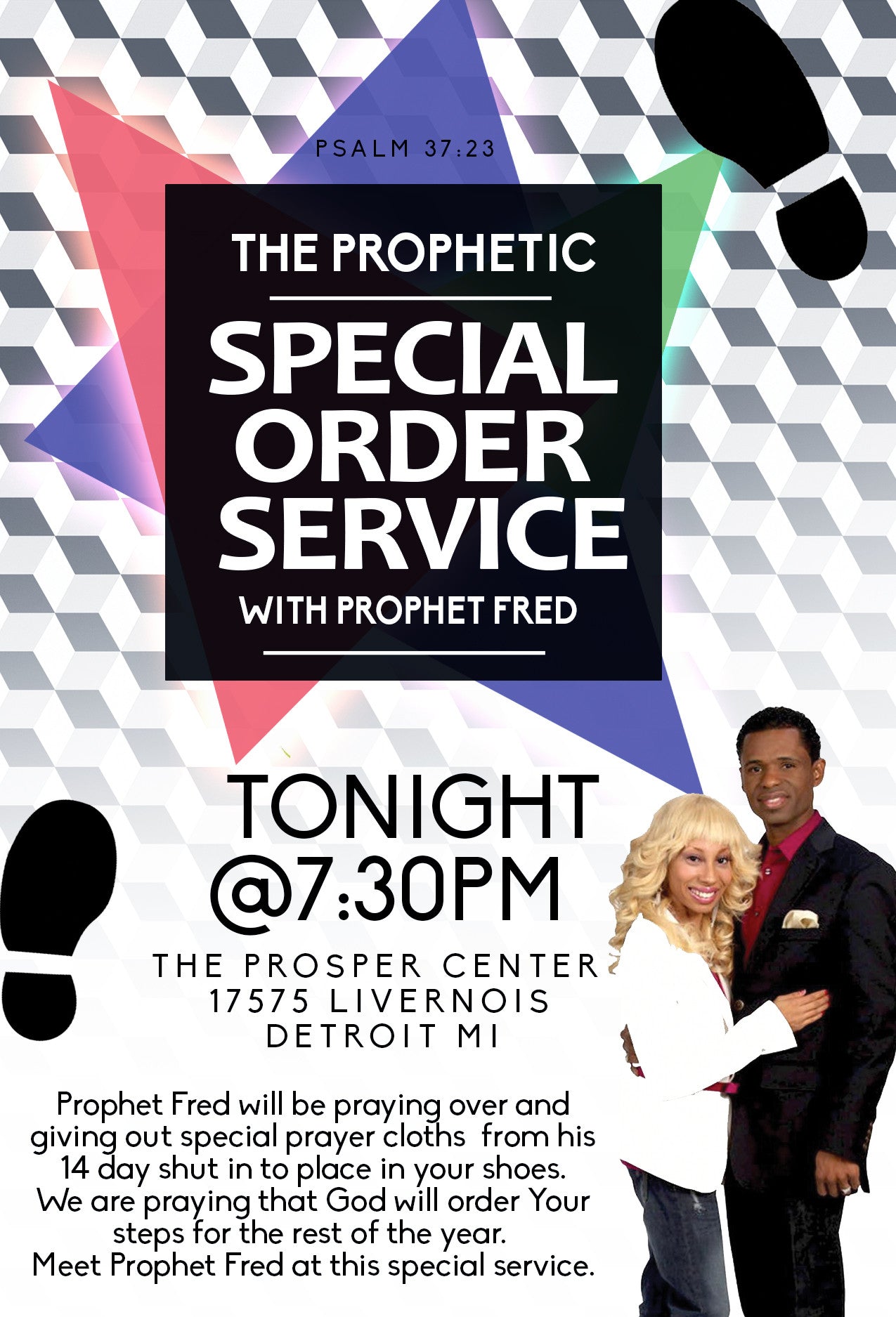 Special Order Service at The Prosper Center @7:30pm 17575 Livernois Detroit MI